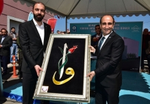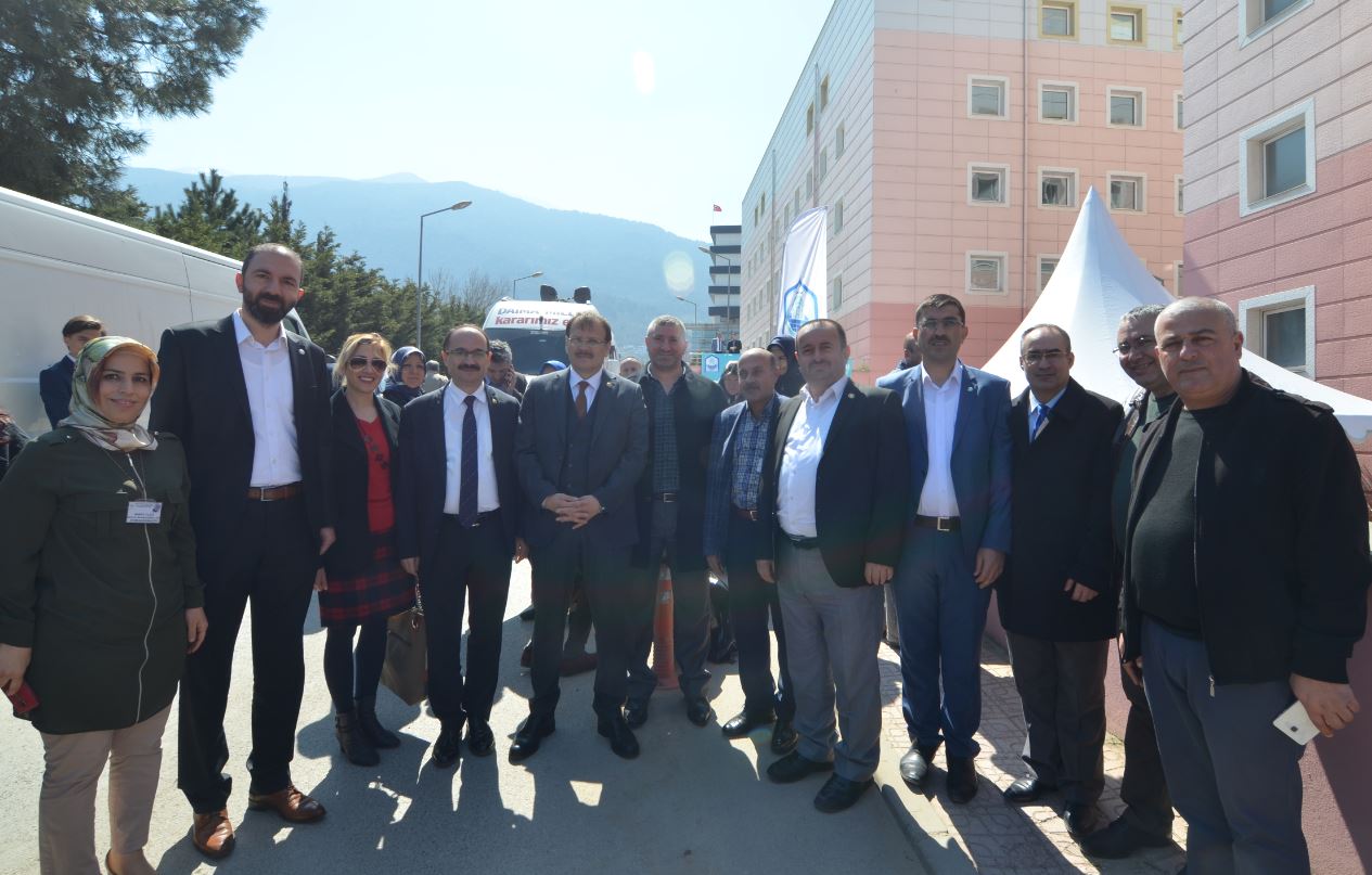 Törende sağlık çalışanları adına Sağlık-Sn Şube Başkanı Gökhan Yünkül, Yıldırım Belediye Başkanı Edebali’ye, hediye takdiminde bulundu.