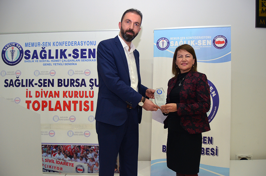 İl Divan Toplantımızın sonunda çeşitli nedenler ile temsilcilik görevinden ayrılan arkadaşlarımıza sendikamıza yapmış oldukları hizmetlerden dolayı teşekkür plaketi takdim edildi.