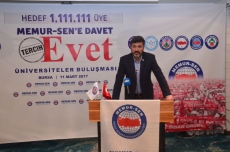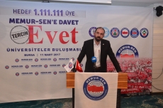 Çok sayıda idareci ve akademisyenin katıldığı Memur-Sen'e davet Tercih Evet programında referandumun yanı sıra üniversitelerimizin, sağlık çalışanlarının sorunları gündemdeydi.