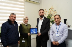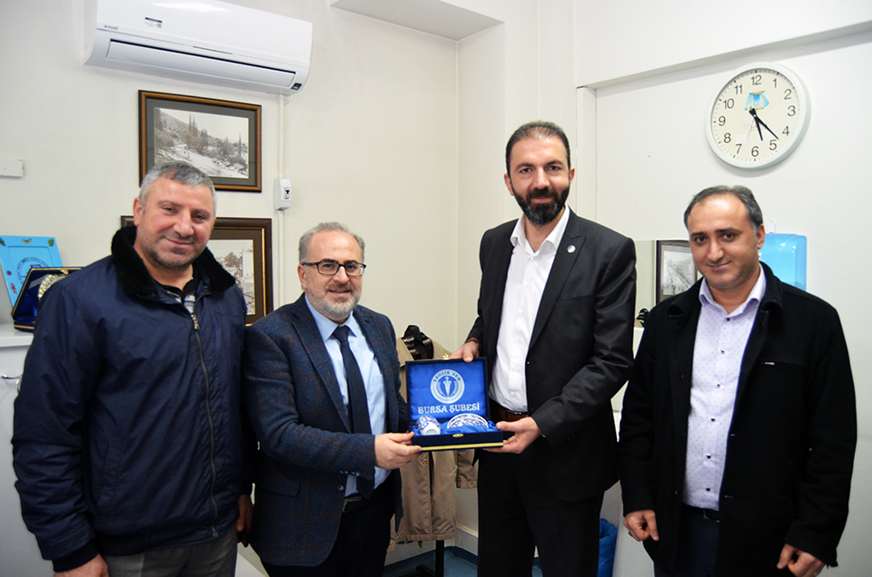 Sağlık-Sen Bursa Şube Başkanımız Gökhan YÜNKÜL ve Başkan Yardımcımız Alaattin DEMİR, Prof.Dr.T.Akyol Göğüs Hastalıkları Hastanesine atanan yeni yöneticileri ziyaret etti. Başhekim Uz.Dr.Özcan AVCI, Başhekim Yardımcıları Dr.Muhammet İkbal BAKIRCI, Uz.Dr.Erkan YILDIRIM, Başhemşire Filiz DOĞRU ve Mali İşler Müdürü Tamer ELİNÇ'i ziyaret eden Şube Başkanımız Gökhan YÜNKÜL, yeni yönetim kadrosuna hayırlı olsun dileklerinde bulunarak başarılar diledi. Ziyarette Şube Başkanımız atanan yeni yöneticilere sendikamızın hediyesini takdim etti.