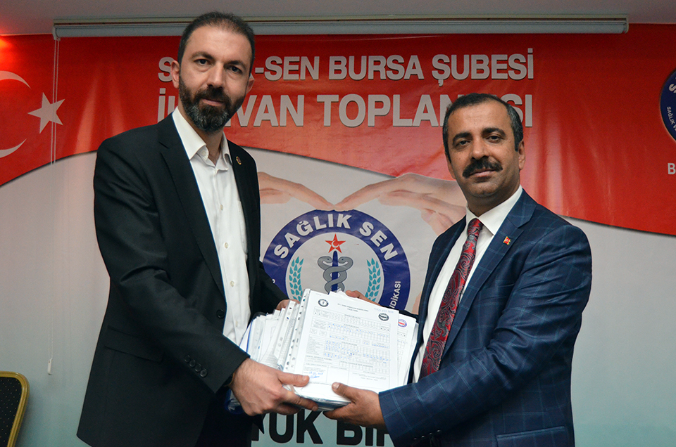 Programın ardından Bursa Şube Başkanımız Gökhan YÜNKÜL sendikamıza yeni üye olarak katılan 300 çalışanımızın üyelik formlarını Genel Başkanımıza takdim etti.