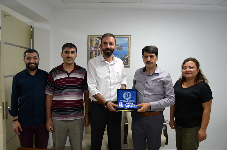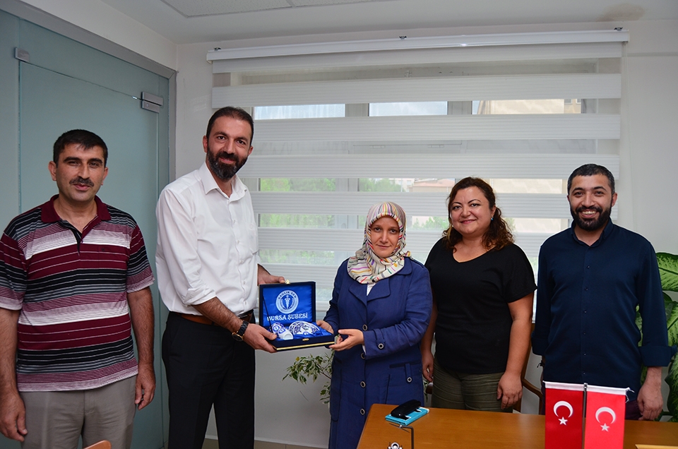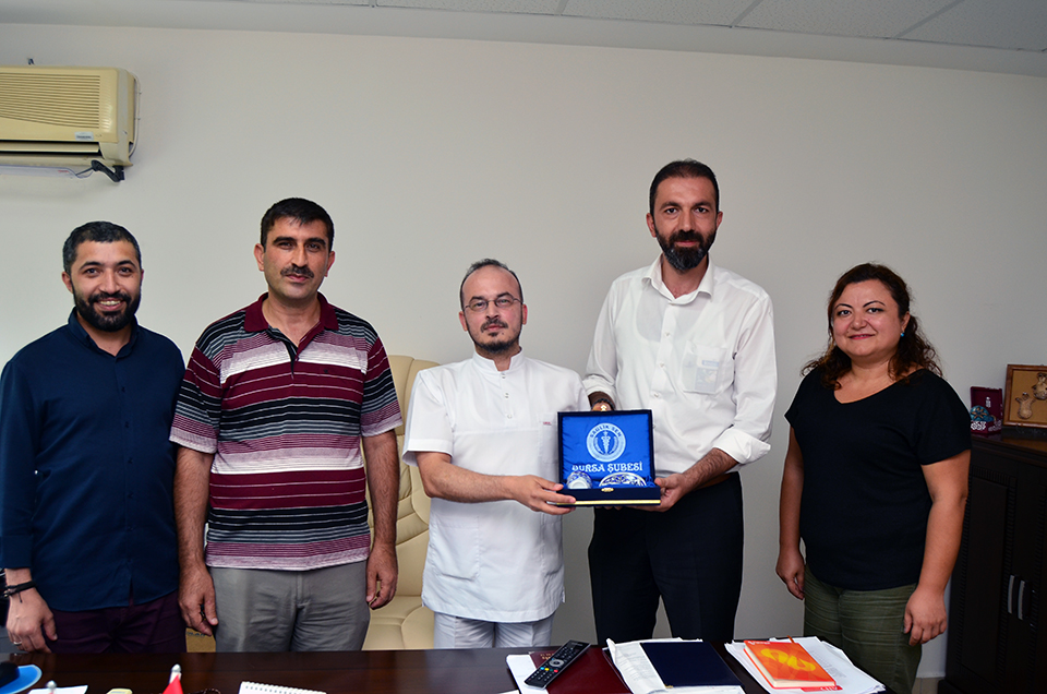 Sağlık-Sen Bursa Şube Başkanımız Gökhan YÜNKÜL, Başkan Yardımcımız Yusuf TURGUT hastane temsilcilerimiz ile Bursa Ağız ve Diş Sağlığı Hastanesi yöneticilerini ziyaret etti. Hastane Başhekimi Dt. Lütfi ÇİFTCİ'yi ziyaretinde konuşan Şube Başkanımız Gökhan YÜNKÜL Bursa ADS Hastanesi yönetiminin başarılı çalışmaları ile takdir edildğini, bir çok yeni proje ile kamuoyunun takdirini kazandığını belirtti. Çalışan memnuniyetinin önemli olduğunu belirten YÜNKÜL "yönetim kadrosunun hasta memnuniyeti kadar çalışan memnuniyetinide gözetmesinden memnuniyet duyuyoruz. Çalışanlar ile iletişim çok önemli, bu hususta başta başhekimimiz olmak üzere yöneticilerimizin bu hususa önem vermesi ve bu konuda çalışanlardan gelen geri dönüşlerin pozitif olması bizleri ziyadesi ile memnun etmekte." dedi. Ziyaretten duyduğu memnuniyeti dile getiren Başhekim Dt.Lütfi ÇİFTCİ sivil toplum kuruluşları ile iletişime önem verdiklerini, Sağlık-Sen Bursa Şubesinin başarılı çalışmalarını takdir ettiklerini belirterek Sağlık-Sen'den gelen görüş ve önerileri önemsediklerini belirtti.