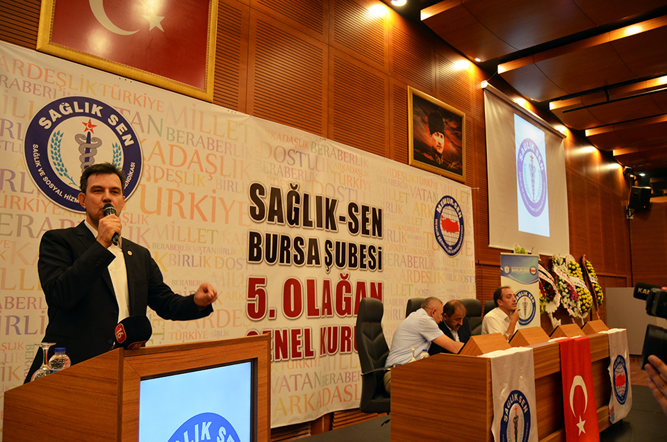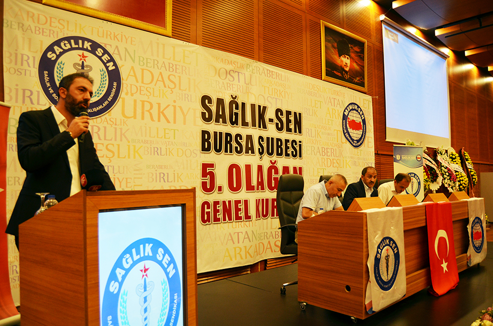Sağlık-Sen Bursa Şubemizin 5. Olağan Genel Kurulu bugün gerçekleşti. AK Parti Milletvekili Dr.Mustafa ESGİN, Büyükşehir Belediyesi Başkan Vekili Mihrimah KOCABIYIK, AK Parti Yıldırım İlçe Başkanı Oktay YILMAZ, Sağlık Müdürü Dr.Özcan AKAN, Aile ve Sosyal Politikalar İl Müdürü Erkut ÖNEŞ, İHH Bursa Başkanı Hüseyin KAPTAN, Bursa Büyükşehir Belediyesi Daire Başkanı Numan ŞEKER, Memur-Sen'e bağlı sendikalarımız ile diğer illerden gelen Sağlık-Sen Başkanlarımızın katılımı ile gerçekleşen 5. Olağan Genel Kurulda Şube Başkanımız Gökhan YÜNKÜL güven tazeleyerek tekrar şube başkanı seçildi.