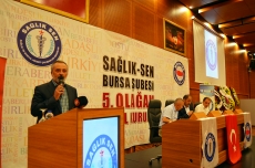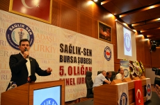 Kongremize katılan misafirlerimizin selamlama konuşmalarının ardın kürsüye çıkan AK Parti Milletvekili Dr.Mustafa ESGİN 5.Olağan Genel Kurulumuzun hayırlı olmasını dileyerek, "Sağlık-Sen ve Memur-sen teşkilatları yaptıkları çalışmalar ile her zaman takdir edilmiştir. Milletin iradesinin yanında yer alan Sağlık-Sen'in bu duruşunu hep takdirle karşıladım. 15 Temmuzda darbeye karşı net bir tavır koyan, Merhum Mehmet Akif İNAN'ın mayasını çaldığı Memur-Sen ve Sağlık-Sen bugünde ülkemizin demokrasi ve emek mücadelesinde ön saflarda yer almıştır. 5. Olağan Genel Kurulun hayırlı olmasını dileyerek Memur-Sen ve Sağlık-Sen İl Başkanı Gökhan YÜNKÜL'e başarılar diliyorum. Bundan sonraki süreçtede hep birlikte Bursa'mız ve sağlık çalışanlarının daha iyi koşullarda çalışması için birlikte çalışacağız." dedi.