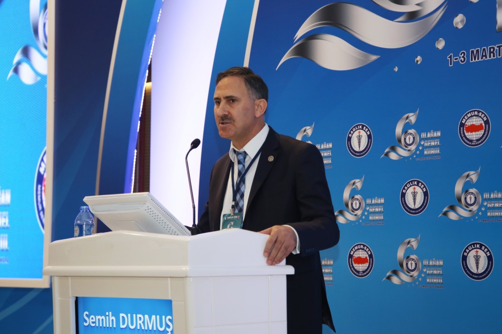 Konuşmasında, “Önümüzdeki dört yılda; birliğimizi, birlikteliğimizi, kardeşliğimizi pekiştiririz, kuvvetlendiririz. Ortak akılla karar verme hasletimizi geliştiririz. Çatışmanın değil dayanışmanın zemini güçlenir. Güzel ahlak, sendikanın ve sendikacılığın temeli kabul edilir. Sendikal mücadelemizin zemini genişletilir. Örgütlenme kapasitemiz de, toplu pazarlık maharetimiz de yükselir.” Şeklinde konuşan Durmuş, Sağlık-Sen’in kuruluş tarihinin müstekbirler karşısında dirayeti kuşananların, bedeli ne olursa olsun adaletten yana olanların destanı olduğunu kaydetti.