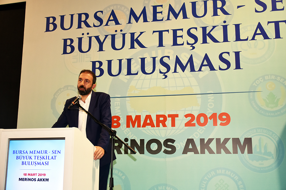 Toplantının açılış konuşmasını yapan Memur-Sen Bursa İl Temsilcimiz ve Sağlık-Sen Şube Başkanımız Gökhan Yünkül,"Memur-Sen ülkemiz ve tüm mazlum coğrafyalar için bir sivil toplum örgütü olarak mücadele ederken aynı zamanda sendikal faaliyetlerimizin merkezine üyelerimizi ve kamu çalışanlarımızı koyarak da sendikal mücadelesine devam ediyor. Hatırlarsınız bazı sendikalar yetkili olduğu dönemlerde masadan kaçmayı adet haline getirmişlerdi. Ancak Memur-Sen yetkili sendika olduktan sonra masada müzakere eden, gerektiğinde tavır koyan, sorun değil çözüm üreten bir sendikal anlayışı masaya hakim kıldı. Yetkili olduğumuz günden itibaren çözülemeyecek denilen onlarca sorunu çözen ve onlarca kazanım elde eden Memur-Sen ve bağlı sendikalarımızın bu başarılı çalışmaları neticesinde kamu çalışanlarının gönlünde yer bulduk. Çözüm bekleyen bir çok sorun olduğunun farkındayız. Ancak bu sorunlarında çözüm adresi yine Memur-Sen olacaktır. Bugün sahaya çıkıp Memur-Sen’e çamur atarak sendikacılık yapan malum sendikanın geçmişte yaptığı sendikacılığı herkes hatırlamaktadır. Tehditle üye aldığımızı, sarı sendikacılık yaptığımızı iddia eden bu malum sendika aslında kirli geçmişini bize yansıtmaya çalışmaktadır. Bizler kamu çalışanlarının gönlünü kazanmaya, üyelik formuna atılan imzayı bize teslim edilen bir emanet olarak görmeye devam edeceğiz. Aldanmayan ve aldatmayan sendikacılık yapmaya devam edeceğiz" dedi.
