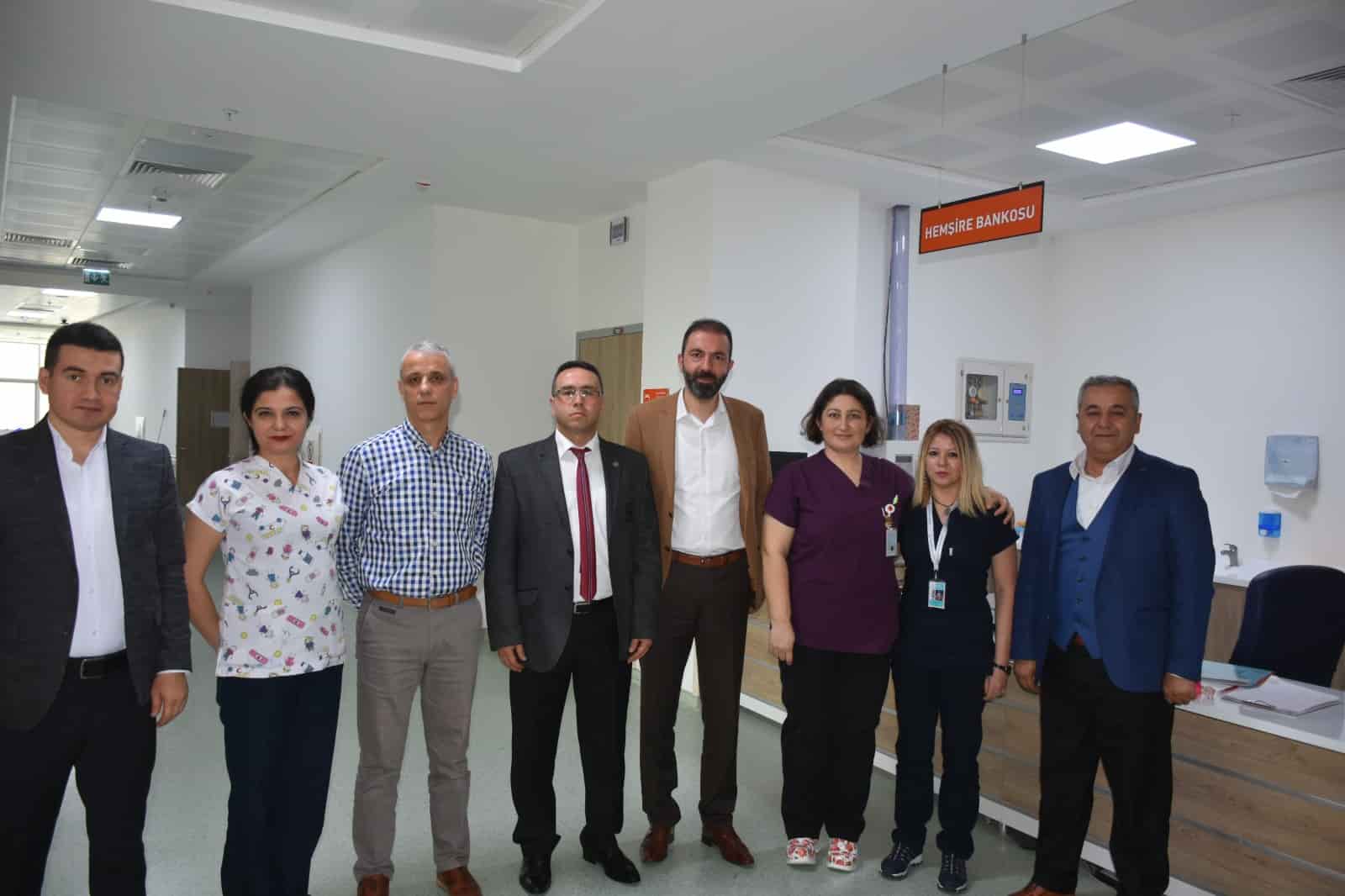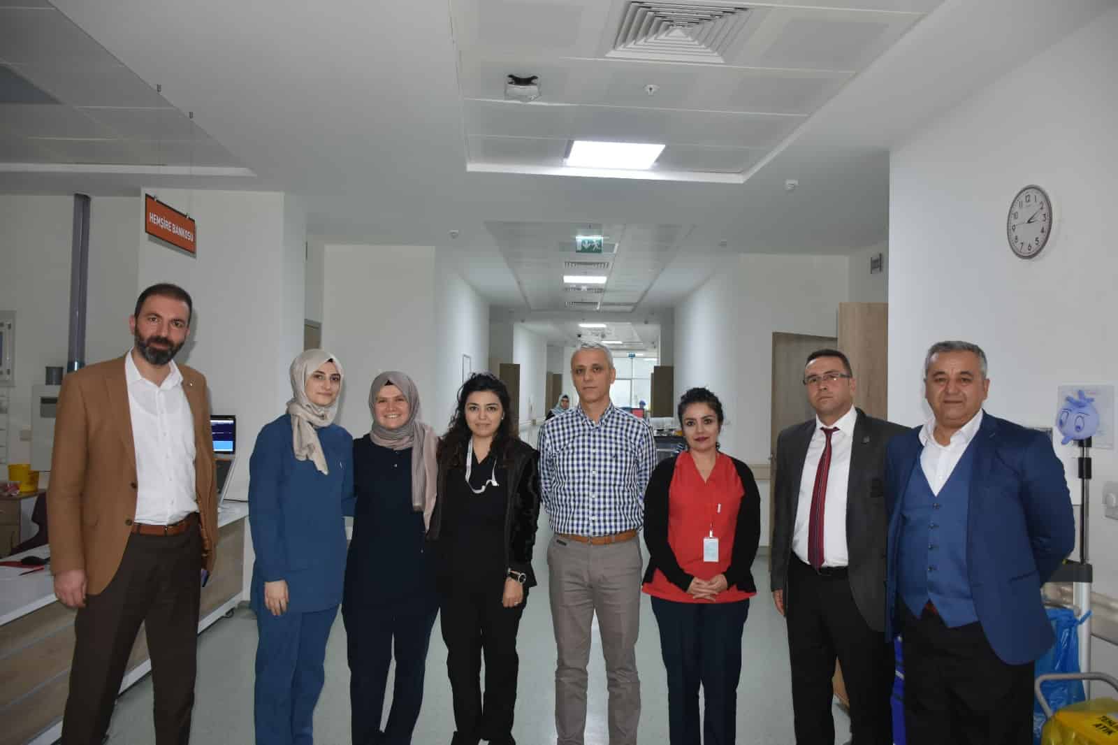 Bursa Memur-Sen İl Temsilcimiz ve Sağlık-Sen Bursa Şube Başkanımız Gökhan YÜNKÜL; Başkan Yardımcımız Erkan BAŞTAR, Başkan Yardımcımız Mehmet ÇİÇEKEL ve Gemlik İlçe Temsilcimiz Ahmet DEMİR ile birlikte Gemlik Devlet Hastanesi çalışanlarını ziyaret etti. Gemlik İlçe Temsilcimiz Ahmet DEMİR'den Gemlik'teki sendika çalışmalarımız hakkında bilgi alan Şube Başkanımız Yünkül, ziyarette çalışanlara sendikamızın çalışmaları hakkında bilgiler verdi ve sendikamızın bugüne kadar çalışanlar için en çok kazanım elde eden sendika olduğunu belirtti. Çalışanların sorunlarını ve taleplerini dinleyen Yünkül, daha sonra Hastane Başhekimi Op.Dr.Şahmeran ÇELENKOĞLU'nu makamında ziyaret ederek, çalışanların sorun ve beklentilerini iletti ve görüş alışverişinde bulundu. Hastane Başhekimi Op.Dr.Şahmeran ÇELENKOĞLU, ziyaretten duyduğu memnuniyeti ifade ederek, hastane ziyareti için Şube Başkanımız Gökhan YÜNKÜL'e teşekkür etti.