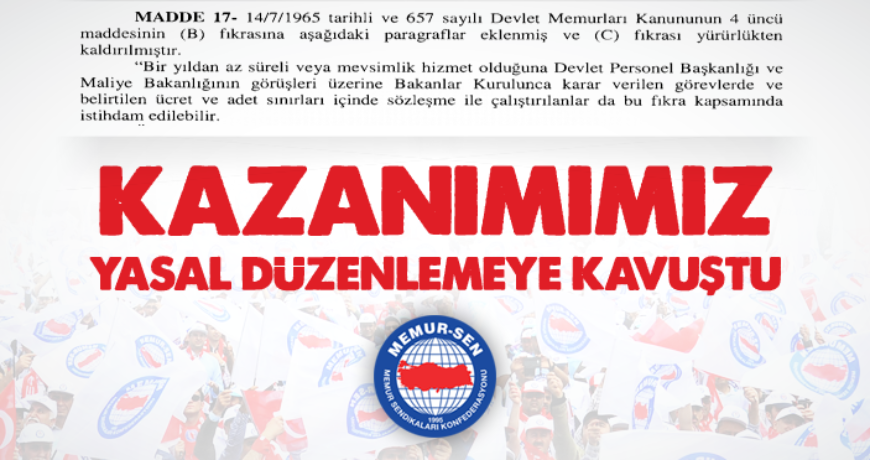 Kazanımımız Yasal Düzenlemeye Kavuştu