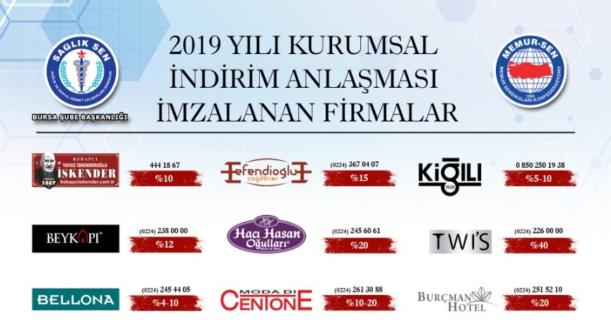 2019 YILI İNDİRİM ANLAŞMALARIMIZ